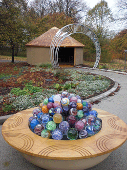 The Tree of Life, Bowl of Marbles & Water Arch were created by artist Tim Ward of CTS for the new-build St Luke's Palliative Care Centre in Walsall which supports terminally ill adult patients and their families mainly from the local area. The project nurtured and embraced the ethos of the new centre of not to be seen by the local populace as 'a place where people die', but rather a place where life is celebrated and embraced. This philosophy is resonant in the final art pieces.